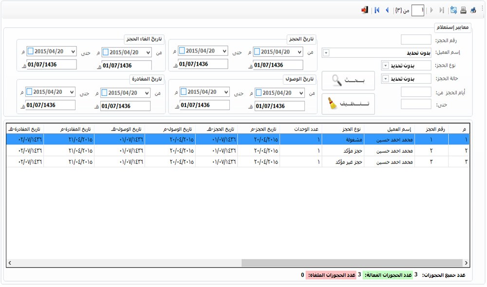 الاستعلام عن الحجوزات