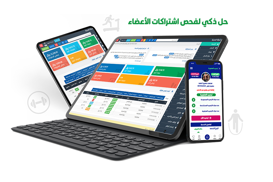 نظام إدارة متكامل لجميع المشتركين في الجيم أو مراكز اللياقة والنوادي الصحية والرياضية من أول تسجيل الاشتراكات الجديدة وإدخال بيانات المشتركين لأول مرة والتقاط صور شخصية لهم وحفظها في ملف خاص بكل عميل يضم تاريخ انضمامه ونوع العضوية ومدة أو باقة الاشتراك لمتابعة اشتراكه بشكل دوري وحصصه التدريبية بحيث يتم إلغاء أو تجديد الاشتراك تلقائيًا.