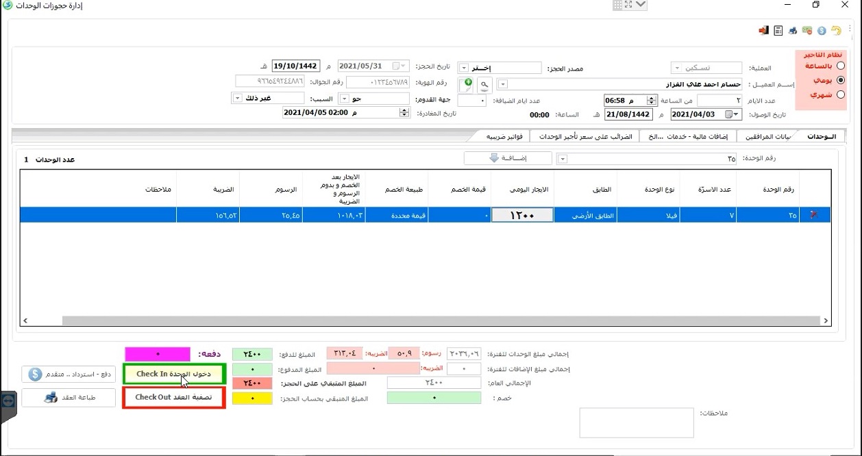 لقطات من نظام فكرة لإدارة الفنادق والشقق المفروشة