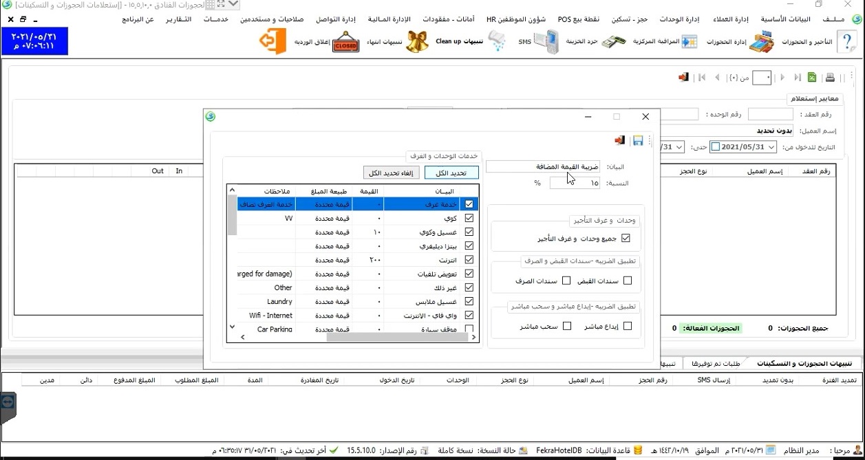 برنامج متكامل يأتي بحزمة من الأنظمة تمنحك حلول مُبتكرة لكل نشاط أو مهمة خاصة بعمل الفنادق والشقق المفروشة والشاليهات المؤجرة وكذلك مكاتب العقارات المختلفة. ويأتي البرنامج بشاشة (إعدادات النظام) التي تتيح لكل مؤسسة ضبط عمل البرنامج وفق رؤيتها الخاصة.