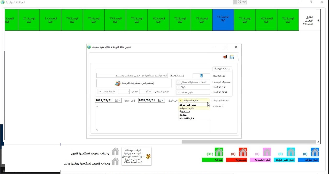 نظام تتبع قوي يساعدك على متابعة حالات الغرف في الشقق المفروشة والشاليهات وكذلك حالة أجنحة الفنادق باستمرار من أجل إجراء التحديثات وأعمال الصيانة اللازمة من لوحة تحكم البرنامج الخاصة بك بسهولة شديدة.