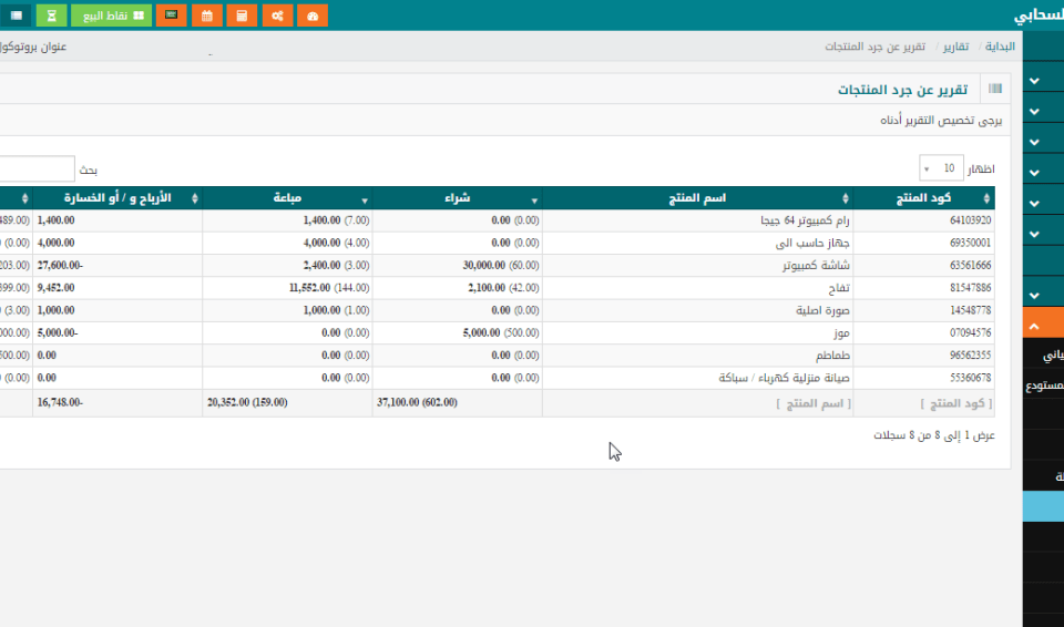 تقرير جرد المنتجات