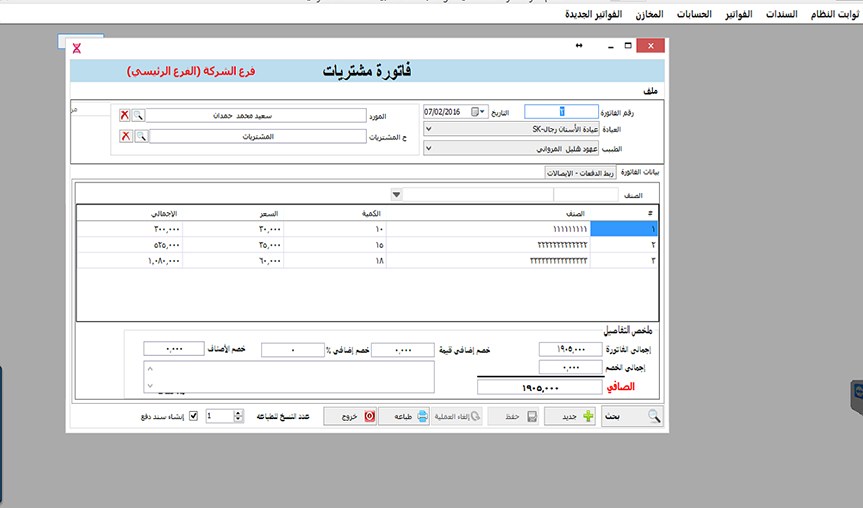 مريض جديد وبياناته