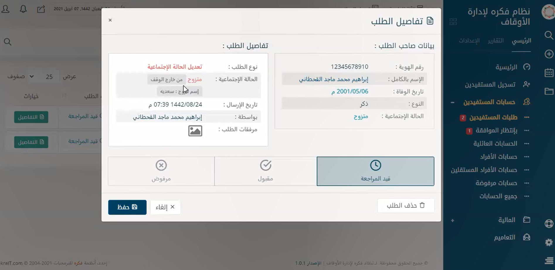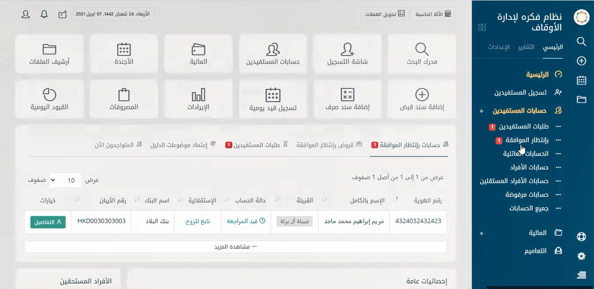 لقطات حية من نظام إدارة الأوقاف