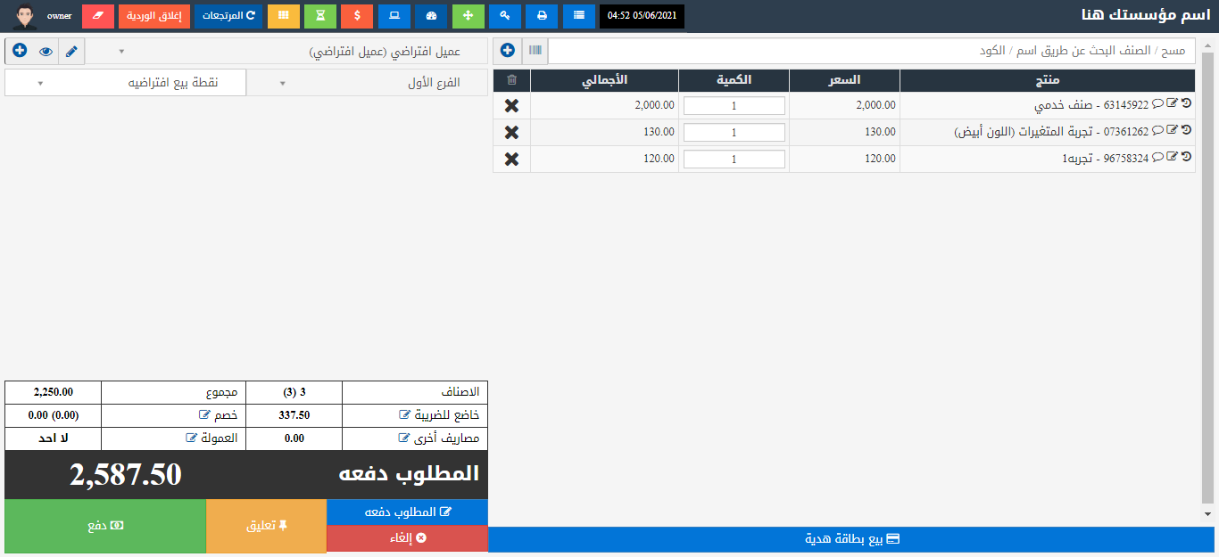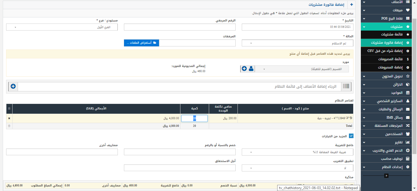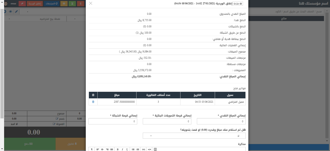 لقطات من نظام للمحاسبة وإدارة المخزون والمبيعات POS