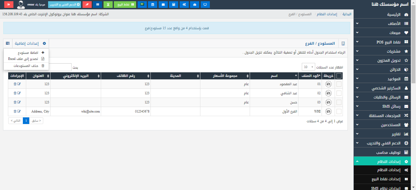 ربط المخازن والفروع